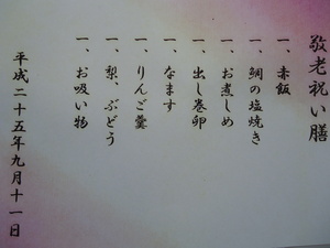今年も、敬老式典に合わせて祝い膳を作りました。