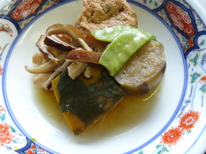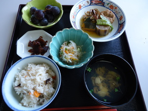・きのこ飯 ・がんもと野菜の含め煮 ・三色酢の物 ・清し汁 ・ぶどう ・奈良漬