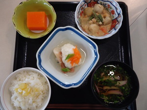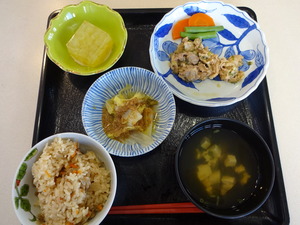 ◆ いもごはん かぶら蒸し 里芋と鶏肉の味噌煮 そば汁 人参寒天 ◆