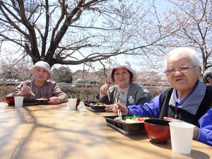 彩り良くできました。桜の木の下で食べるお弁当は格別でしたね。