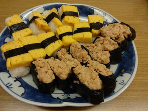 すしバイキング 2018年01月19日 クリスマスと忘年会を兼ねて、豪華に寿司バイキング。カンパチマグロサーモン甘えびイクラ生もの苦手の方には、玉子とツナを準備いたしました。 好きなものを好きなだけ、お酒も一緒に頂きました。