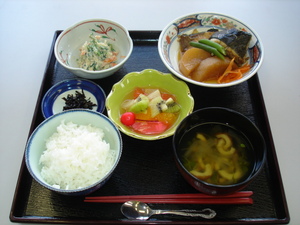 12月の献立紹介です!! 2012年02月17日 遅くなりましたが、12月の献立を紹介します。 ご飯 ぶり大根 ほうれん草の白和え 竹輪のお吸い物 フルーツポンチ 昆布の佃煮 ご飯 魚の照り焼き 南瓜サラダ 豚汁 ヨーグルトゼリー 白菜漬
