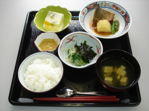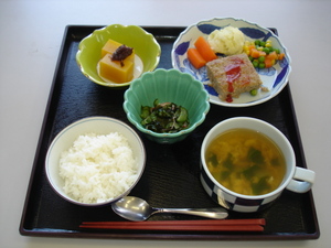 ・ご飯 ・鯖のカレー煮 ・わけぎの酢ぬた ・清し汁 ・フルーツ羹