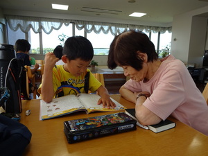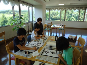 入居者も宿題の見守り、習字の指導など、大活躍です。
