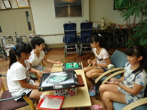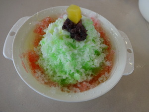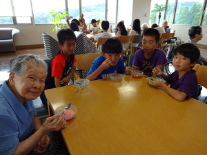 勉強の合間にはお年寄りさんと一緒にかき氷を作って食べたり・・・