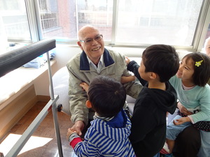 和光保育園の小さなお友達と、歌や手遊び、肩たたきなどで触れ合い●^^●