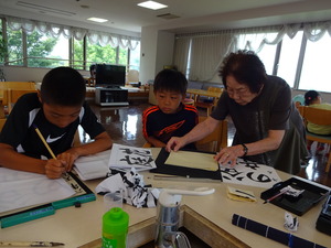 入居者もお習字の指導や見守りで大活躍!!