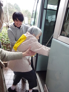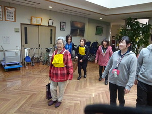 ケアハウスの建物が危険との想定で、天寿荘まで避難しました。