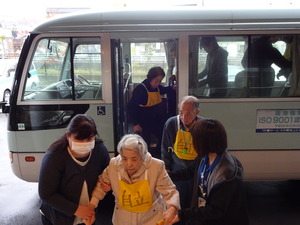 ゼッケンをつけ、訓練開始。バスに乗り込みます。