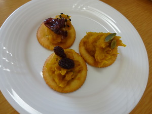 カボチャはつぶすと柔らかーくなり、食べやすくなります。