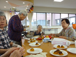 多久で採れたカボチャを頂いたので、みんなが喜ぶスイーツ作りをしました。