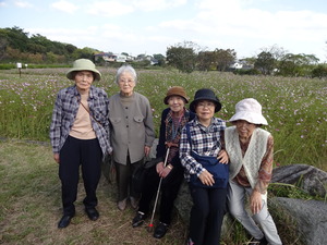 バスハイク(金立コスモス園) 2017年11月29日 金立までのバスハイク。ケアハウスからは、車で40分ほどの場所です。 コスモスは満開をちょっと過ぎていたけれど、楽しいドライブができました。帰りには道の駅「そよかぜ館」でお買い物をして帰路へ。