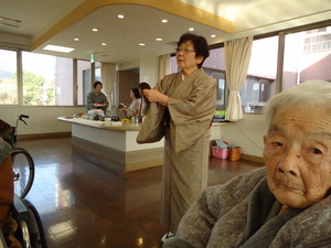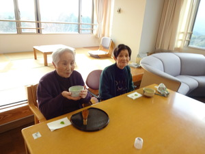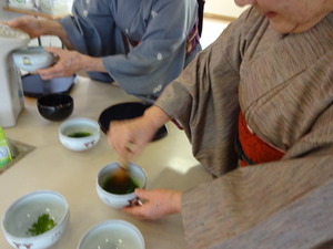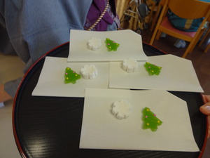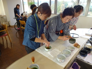 先生のお話を聞きながら、お菓子と抹茶を頂きます。