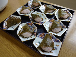 春色のおやつ 2018年05月09日 ◆ 今月の手作りおやつはこれ ↓淡いピンクの桜餅。 みんなで丸めたらあっという間に出来上がりました。昔菓子職人だった方もおられるので、お店に並べてもいいような出来栄えです。