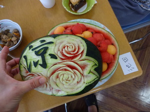これは、スイカの彫刻(カービングというj技術fらしいです)