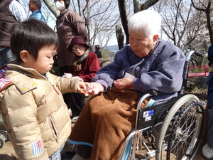 近所の子供も遊びに来ていて、ほのぼのショット!! 「おひとつどうぞ!」(*'ー'*)ふふっ♪