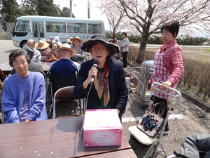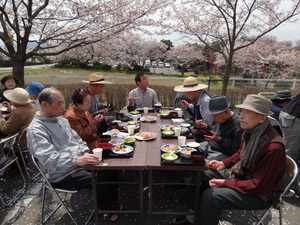 大地玄関前での花見です!