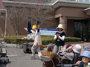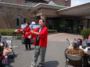 ボランティアで、カラオケの真子先生が奥様と一緒に来てくださり、「銭太鼓」を披露して頂きました。