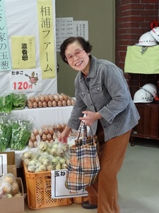 採れたて新鮮野菜や洋服、お花などたくさんあり、いっぱい買われていました。