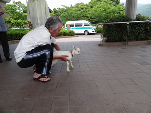 ◎ かわいい仔ヤギ ・・・ 職員が近所に生まれた仔ヤギを連れてきてくれました。まだお乳を飲んでるくらいなので小さく、とてもかわいかったです