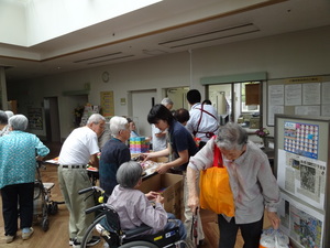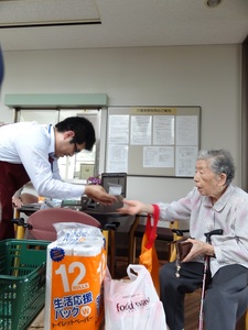 ◎ 日用品販売がフードウェイ多久店の出張販売に変わりました。今までより品揃えも豊富になり、果物や漬物、アイス、ジュースなどもあり皆さんたくさん買われていました。