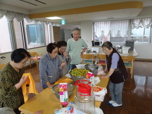 ◎ 梅ジュースつくり ・・・ 今年もF様宅の梅ちぎりに行き、三温糖でのシロップ漬を作りました。