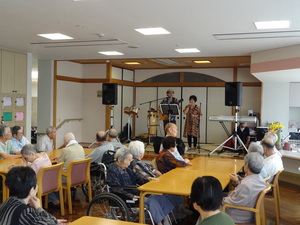 ◎ 誕生会 ・・・ 今月は東多久在住のグループ「ハミング・バード」に来て頂きました。昔懐かしいフォークソングを歌われ、手拍子したり口ずさんだされていました。