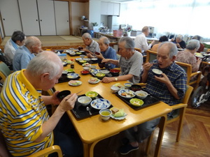 誕生会のときは、みんな一緒にご飯を食べます。今月は、ケーキとメロンの盛り合わせがついていました。(o^-^o) ウフッ
