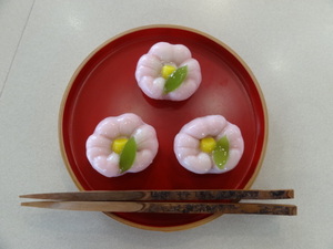 ★ お茶会 ・・・ 今回は主菓子を準備していただきました。また、とり箸がついているのでお箸の作法も教えていただきました。