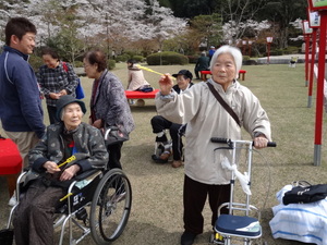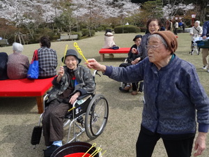 桜も見ごろでお天気もよく、みんなでちょっと休憩(´▽`) ホッ