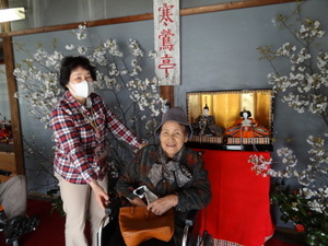 廊下には子供達の作品が!いろいろなお雛様がかわいい(o^-^o) ウフッ