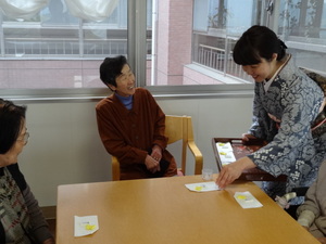 今日は事務所2人も着物をきました。「よかねぇ着物は~」と皆さんに喜んで頂けました。