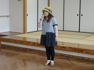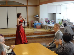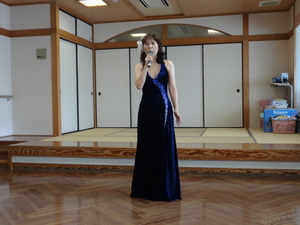 素敵なドレスで、歌われました。「ソーラン渡り鳥」「星の流れに」「みだれ髪」「愛の賛歌」「無法松の一生」など