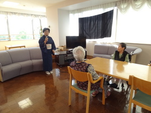今月も、ボランティアの古賀先生に来て頂き「お茶会」をしました。