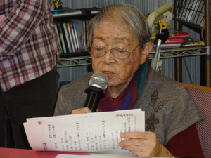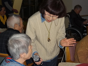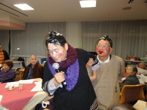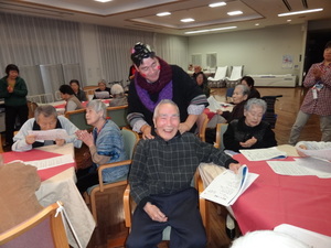 毎年恒例、「天寿荘荘歌」は施設長が熱唱!!(大地バージョンです)