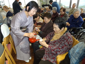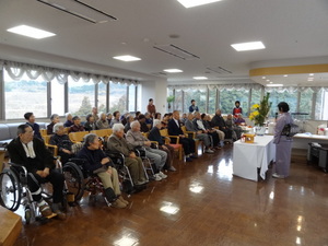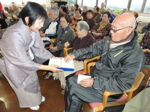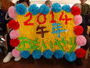 文字の部分は折鶴で、バックは黄色の花紙の玉です。