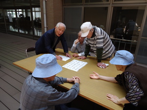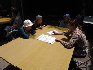 今回はゲームをしました。五十音表でいくつものの名前が作れるか?